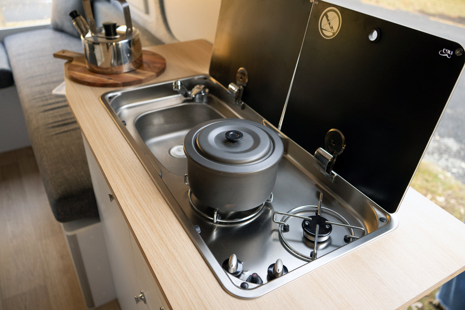 Upgraded gas system, two-burner hob |