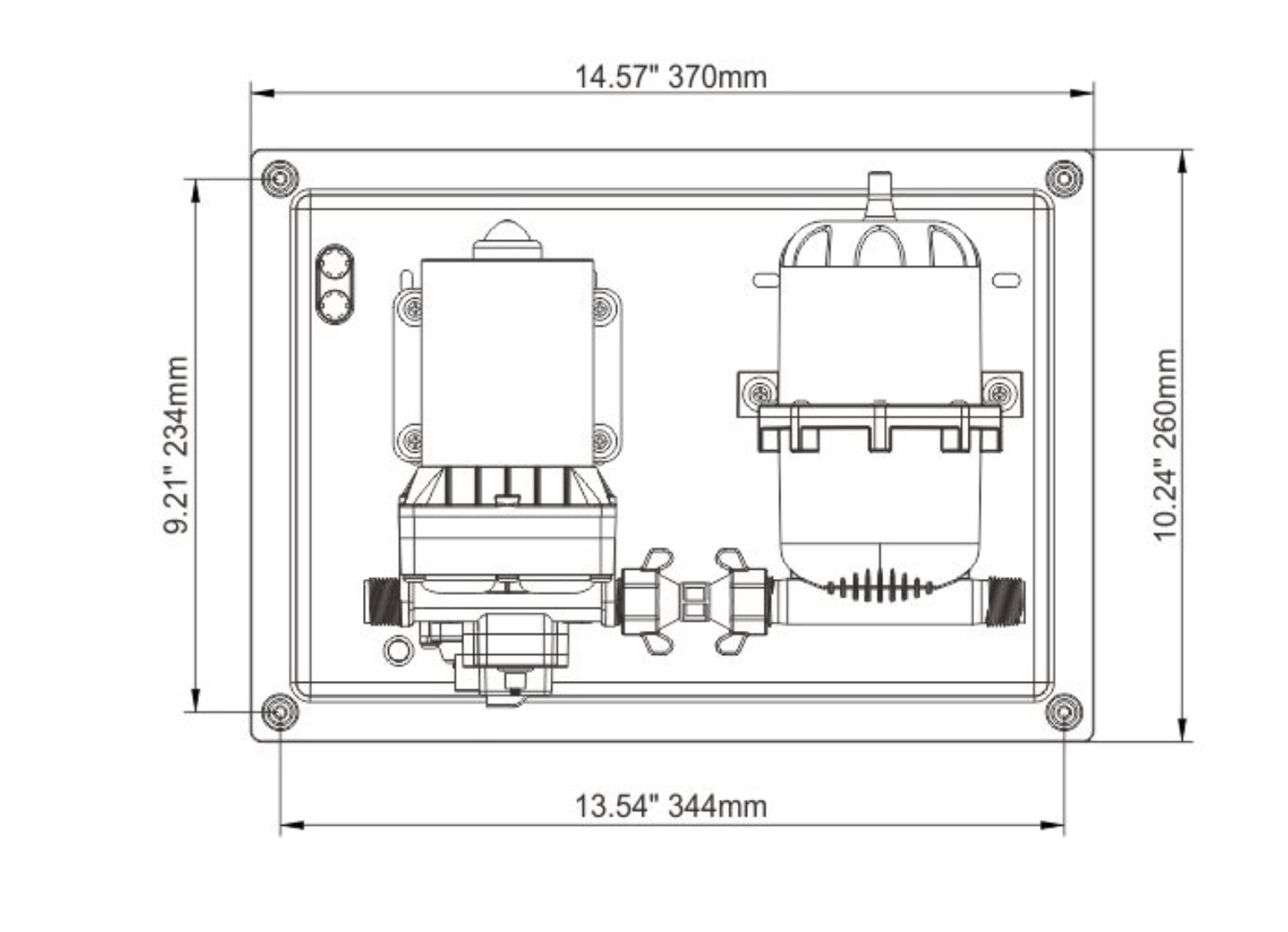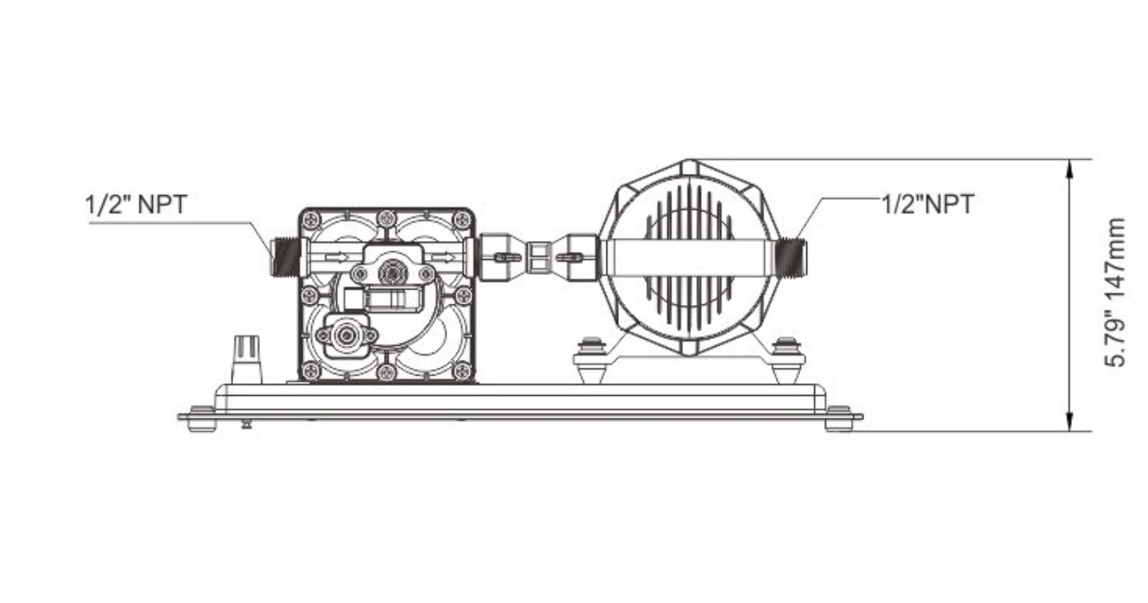 The Seaflo Water Pressure System 11.3LPM 12V offers a complete, ready-to-install solution for efficient water pressure management. It features a 4-chamber diaphragm pump, integrated strainer, and a 0.75L pre-pressurized accumulator tank mounted on a sturdy plate with quick-connect electrical fittings. Designed to supply three or more 1/2" outlets, it delivers a steady 3.0 GPM (11.3 LPM) flow with pressure cycling between 45 PSI (3.1 BAR) and 55 PSI (3.8 BAR). Constructed with durable EPDM valves and a Santoprene diaphragm, this system ensures quiet, reliable operation for professional and amateur use alike.